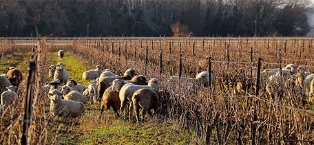 Désherbage naturel grâce aux moutons qui pâturent dans nos vignes : un beau cheptel de 1800 bêtes réparties sur 2 troupeaux.
